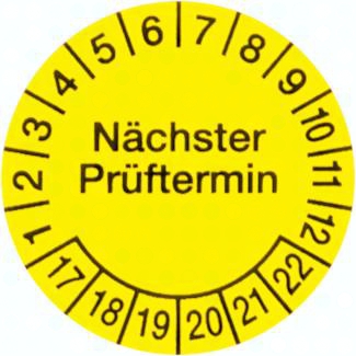 Lieferform: Die Prüfplaketten werden auf Bögen zu je 10 Stück geliefert. Die Prüfplakette wird aus Dokumentenfolie (zerstörbare Folie) hergestellt, ist nicht übertragbar und schwer ablösbar.