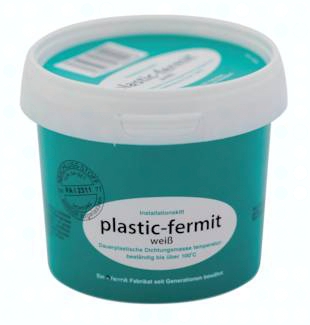 Original "neo-fermit" Giftfreie Dichtungspaste für die Hausinstallation von Gas-, Wasser, (auch Trinkwasser) und Heizungsanlagen. Für metallene Gewindeverbindungen in Verbindung mit Hanf oder Flachs (DIN DVGW Reg. NV-5142BM0052 nach DIN EN 751-2 und DIN 30660) Original "plastic-fermit" Weiße, dauerplastische Dichtungsmasse auf Kunststoffbasis für höchste Anforderungen, temperaturbeständig bis über +100°C, unbeschränkt haltbar, von großer Klebkraft, ohne die Hände zu verschmutzen. Zur Installation sanitärer Anlagen aller Art, für Kalt- oder Heißwasserarmaturen. Nicht für poröse Untergründe, wie z.B. Marmor, geeignet.