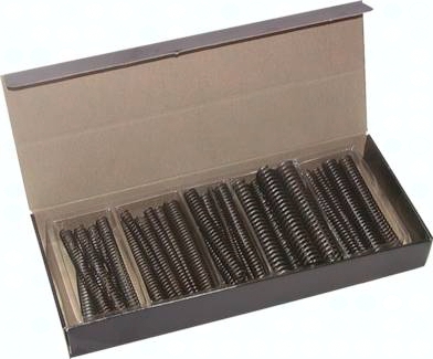 Abmessungen (alle Federn 150 mm lang): Draht 1,0 mm, Ø 8,0 mm Draht 1,0 mm, Ø 10,0 mm Draht 1,2 mm, Ø 12,5 mm Draht 1,5 mm, Ø 12,5 mm Draht 1,8 mm, Ø 15,5 mm Draht 2,0 mm, Ø 15,7 mm Draht 2,2 mm, Ø 18,7 mm Draht 2,5 mm, Ø 19,3 mm Draht 3,0 mm, Ø 25,0 mm