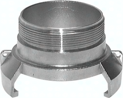 Funktion: Bei den symetrischen Guillemin-Kupplungen erfolgt die Verbindung durch das Ineinandergreifen von 4 aufrechtstehenden Klauen. Auf mobilen Anlagen wird in der Regel eine Kupplung eingesetzt, die mit einem verstellbaren Spannring (Verriegelung) ausgestattet ist, der die Klauen durch Verdrehen verriegelt. Damit die Verbindung hergestellt werden kann, muß mindestens eine der Kupplungshälften mit einer Verriegelung ausgestattet sein. Nur die Kupplung mit Verriegelung ist mit einer Weichdichtung ausgestattet. Verwendung: Tanklastzüge (Straße), Industrie und Landwirtschaft Werkstoffe: Dichtung: NBR, ggf. Kette: Edelstahl (Typ Aluminium: Stahl verz.) Betriebsdruck: 16 bar