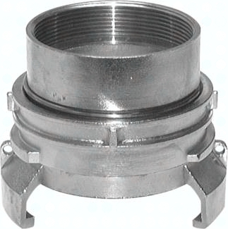Funktion: Bei den symetrischen Guillemin-Kupplungen erfolgt die Verbindung durch das Ineinandergreifen von 4 aufrechtstehenden Klauen. Auf mobilen Anlagen wird in der Regel eine Kupplung eingesetzt, die mit einem verstellbaren Spannring (Verriegelung) ausgestattet ist, der die Klauen durch Verdrehen verriegelt. Damit die Verbindung hergestellt werden kann, muß mindestens eine der Kupplungshälften mit einer Verriegelung ausgestattet sein. Nur die Kupplung mit Verriegelung ist mit einer Weichdichtung ausgestattet. Verwendung: Tanklastzüge (Straße), Industrie und Landwirtschaft Werkstoffe: Dichtung: NBR, ggf. Kette: Edelstahl (Typ Aluminium: Stahl verz.) Betriebsdruck: 16 bar