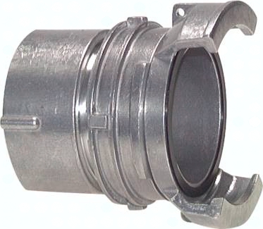 Funktion: Bei den symetrischen Guillemin-Kupplungen erfolgt die Verbindung durch das Ineinandergreifen von 4 aufrechtstehenden Klauen. Auf mobilen Anlagen wird in der Regel eine Kupplung eingesetzt, die mit einem verstellbaren Spannring (Verriegelung) ausgestattet ist, der die Klauen durch Verdrehen verriegelt. Damit die Verbindung hergestellt werden kann, muß mindestens eine der Kupplungshälften mit einer Verriegelung ausgestattet sein. Nur die Kupplung mit Verriegelung ist mit einer Weichdichtung ausgestattet. Verwendung: Tanklastzüge (Straße), Industrie und Landwirtschaft Werkstoffe: Dichtung: NBR, ggf. Kette: Edelstahl (Typ Aluminium: Stahl verz.) Betriebsdruck: 16 bar