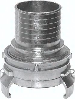 Funktion: Bei den symetrischen Guillemin-Kupplungen erfolgt die Verbindung durch das Ineinandergreifen von 4 aufrechtstehenden Klauen. Auf mobilen Anlagen wird in der Regel eine Kupplung eingesetzt, die mit einem verstellbaren Spannring (Verriegelung) ausgestattet ist, der die Klauen durch Verdrehen verriegelt. Damit die Verbindung hergestellt werden kann, muß mindestens eine der Kupplungshälften mit einer Verriegelung ausgestattet sein. Nur die Kupplung mit Verriegelung ist mit einer Weichdichtung ausgestattet. Verwendung: Tanklastzüge (Straße), Industrie und Landwirtschaft Werkstoffe: Dichtung: NBR, ggf. Kette: Edelstahl (Typ Aluminium: Stahl verz.) Betriebsdruck: 16 bar