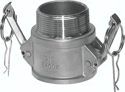 Werkstoffe: Typ Edelstahl: Körper: Edelstahl (1.4408), Dichtung: NBR, Griff: Edelstahl, Ring / Sicherungsstift / ggf. Kette: Edelstahl Typ Polypropylen: Körper: Polypropylen*, Dichtung: EPDM (11/4" Stecker- Ø 45 mm): NBR, Griff: Edelstahl, Ring / Sicherungsstift / ggf. Kette: Edelstahl Typ Messing: Körper: Messing, Dichtung: NBR, Griff: Messing, Ring / Sicherungsstift / ggf. Kette: Edelstahl Typ Aluminium: Körper: Aluminium, Dichtung: NBR, Griff: Edelstahl, Ring / Sicherungsstift / ggf. Kette: Stahl verzinkt Temperaturbereich: -10°C bis max. +80°C Druckbereich: 0 - 16 bar, sowie Grobvakuum, (Polypropylen: 6 bar bei +40°C, Aluminium DN 50 - DN 120: 10 bar, Aluminium DN 140: 5,2 bar) Lieferumfang: inkl. Ring, Sicherungsstift und ggf. Kette Optional: andere Dichtungswerkstoffe durch Austausch der Dichtungen Vorteile: voller Durchgang, geringer Druckverlust, auch für Feststoffe geeignet, da keine internen Ventile, Abmessungen weltweit genormt nach MIL-C-27487 *Für Flüssigkeiten bitte bevorzugt Edelstahl, Messing oder Aluminium einsetzen, **Stecker-Ø 53 mm mit reduziertem Anschluss. Das entspricht nicht der Norm, ***vier Handhebel, ****ohne Sicherungsstift, *****ein Handhebel ohne Sicherungsstift