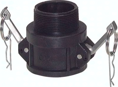 Werkstoffe: Typ Edelstahl: Körper: Edelstahl (1.4408), Dichtung: NBR, Griff: Edelstahl, Ring / Sicherungsstift / ggf. Kette: Edelstahl Typ Polypropylen: Körper: Polypropylen*, Dichtung: EPDM (11/4" Stecker- Ø 45 mm): NBR, Griff: Edelstahl, Ring / Sicherungsstift / ggf. Kette: Edelstahl Typ Messing: Körper: Messing, Dichtung: NBR, Griff: Messing, Ring / Sicherungsstift / ggf. Kette: Edelstahl Typ Aluminium: Körper: Aluminium, Dichtung: NBR, Griff: Edelstahl, Ring / Sicherungsstift / ggf. Kette: Stahl verzinkt Temperaturbereich: -10°C bis max. +80°C Druckbereich: 0 - 16 bar, sowie Grobvakuum, (Polypropylen: 6 bar bei +40°C, Aluminium DN 50 - DN 120: 10 bar, Aluminium DN 140: 5,2 bar) Lieferumfang: inkl. Ring, Sicherungsstift und ggf. Kette Optional: andere Dichtungswerkstoffe durch Austausch der Dichtungen Vorteile: voller Durchgang, geringer Druckverlust, auch für Feststoffe geeignet, da keine internen Ventile, Abmessungen weltweit genormt nach MIL-C-27487 *Für Flüssigkeiten bitte bevorzugt Edelstahl, Messing oder Aluminium einsetzen, **Stecker-Ø 53 mm mit reduziertem Anschluss. Das entspricht nicht der Norm, ***vier Handhebel, ****ohne Sicherungsstift, *****ein Handhebel ohne Sicherungsstift
