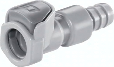 Steckerdurchmesser: 11 mm (Haltenutbreite ca. 3,4 mm) Durchfluss* Luft (Wasser): 700 - 1500 l/min (10 - 17 l/min) Funktion: Wird durch Einstecken des Steckers in die Muffe bis zum hörbaren "Klick" gekuppelt. Ein Druck auf den ergonomischen Kunststoff-Entriegelungsknopf (bei Kupplungen mit Schlauchanschluss gegen versehentliches Entriegeln geschützt) gibt den Stecker wieder frei. Es können Kupplungsstecker und Kupplungsdosen mit und ohne Absperrventil, sowie verschiedene Werkstoffe beliebig kombiniert werden. Das Absperrventil verhindert ein Austreten des Mediums im ungekuppelten Zustand. Typ POM: Werkstoffe: Körper, Ventile und Entriegelungstaste: Acetal (POM, FDA-zertifiziert), Ventilfedern: Edelstahl AISI 316, Dichtungen: NBR, äußere Feder unter Druckknopf: AISI 302, Schottmutter: Messing vernickelt Temperaturbereich: -40°C bis max. +80°C Betriebsdruck: 0 - 8,3 bar, Vakuum bis 80% Medien: Druckluft, Wasser, Alkohole, Glykol, Mineralöle, Benzin, Sauerstoff**, Kohlendioxid, milde Chemikalien Sterilisierbar duch: Formalin, Isopropylalkohol, Ethylalkohol Einsatzbereich: Für allgemeine Anwendungen. Gute Beständigkeit gegenüber Mineralölen. Typ Polypropylen: Werkstoffe: Körper, Ventile und Entriegelungstaste: Polypropylen (FDA-zertifiziert), Ventilfedern: Edelstahl AISI 316, Dichtungen: EPDM, Feder unter Druckknopf: AISI 302, Schottmutter: Messing vernickelt, Schottdichtung: EPDM Temperaturbereich: 0°C bis max. +70°C Betriebsdruck: 0 - 7,2 bar, Vakuum bis 80%, (>+27°C Druckabschläge beachten: +40°C: max. 5,4 bar, +50°C: max. 4,3 bar, +60°C: max. 3,4 bar, +70°C: max. 2,0 bar) Medien: Druckluft, Wasser, viele Säuren und Laugen, Alkohole, Glykol, MEK, Sauerstoff**, Ozon, Kohlendioxid, viele Chemikalien Sterilisierbar durch: Formalin, Isopropylalkohol, Ethylalkohol, Ethylenoxid, Gammastrahlung Einsatzbereich: Für viele Chemikalien geeignet. Keine Beständigkeit gegenüber Mineralölen. Kompatibel zu****: CPC-Colder APC, CPC-Colder EFC12 *bei 1 bar Druckabfall (je nach Konfiguration der Kupplungskombination: mit/ohne Ventil, Anschlussdimension, ... liegt der Durchfluss innerhalb des angegebenen Bereichs), **vor Verwendung mit Sauerstoff unbedingt reinigen. ****Namen und Bezeichnungen sind z.T. eingetragene Warenzeichen der jeweiligen Hersteller. ***kurze Bauform