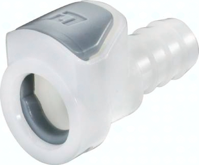 Steckerdurchmesser: 11 mm (Haltenutbreite ca. 3,4 mm) Durchfluss* Luft (Wasser): 700 - 1500 l/min (10 - 17 l/min) Funktion: Wird durch Einstecken des Steckers in die Muffe bis zum hörbaren "Klick" gekuppelt. Ein Druck auf den ergonomischen Kunststoff-Entriegelungsknopf (bei Kupplungen mit Schlauchanschluss gegen versehentliches Entriegeln geschützt) gibt den Stecker wieder frei. Es können Kupplungsstecker und Kupplungsdosen mit und ohne Absperrventil, sowie verschiedene Werkstoffe beliebig kombiniert werden. Das Absperrventil verhindert ein Austreten des Mediums im ungekuppelten Zustand. Typ POM: Werkstoffe: Körper, Ventile und Entriegelungstaste: Acetal (POM, FDA-zertifiziert), Ventilfedern: Edelstahl AISI 316, Dichtungen: NBR, äußere Feder unter Druckknopf: AISI 302, Schottmutter: Messing vernickelt Temperaturbereich: -40°C bis max. +80°C Betriebsdruck: 0 - 8,3 bar, Vakuum bis 80% Medien: Druckluft, Wasser, Alkohole, Glykol, Mineralöle, Benzin, Sauerstoff**, Kohlendioxid, milde Chemikalien Sterilisierbar duch: Formalin, Isopropylalkohol, Ethylalkohol Einsatzbereich: Für allgemeine Anwendungen. Gute Beständigkeit gegenüber Mineralölen. Typ Polypropylen: Werkstoffe: Körper, Ventile und Entriegelungstaste: Polypropylen (FDA-zertifiziert), Ventilfedern: Edelstahl AISI 316, Dichtungen: EPDM, Feder unter Druckknopf: AISI 302, Schottmutter: Messing vernickelt, Schottdichtung: EPDM Temperaturbereich: 0°C bis max. +70°C Betriebsdruck: 0 - 7,2 bar, Vakuum bis 80%, (>+27°C Druckabschläge beachten: +40°C: max. 5,4 bar, +50°C: max. 4,3 bar, +60°C: max. 3,4 bar, +70°C: max. 2,0 bar) Medien: Druckluft, Wasser, viele Säuren und Laugen, Alkohole, Glykol, MEK, Sauerstoff**, Ozon, Kohlendioxid, viele Chemikalien Sterilisierbar durch: Formalin, Isopropylalkohol, Ethylalkohol, Ethylenoxid, Gammastrahlung Einsatzbereich: Für viele Chemikalien geeignet. Keine Beständigkeit gegenüber Mineralölen. Kompatibel zu****: CPC-Colder APC, CPC-Colder EFC12 *bei 1 bar Druckabfall (je nach Konfiguration der Kupplungskombination: mit/ohne Ventil, Anschlussdimension, ... liegt der Durchfluss innerhalb des angegebenen Bereichs), **vor Verwendung mit Sauerstoff unbedingt reinigen. ****Namen und Bezeichnungen sind z.T. eingetragene Warenzeichen der jeweiligen Hersteller. ***kurze Bauform