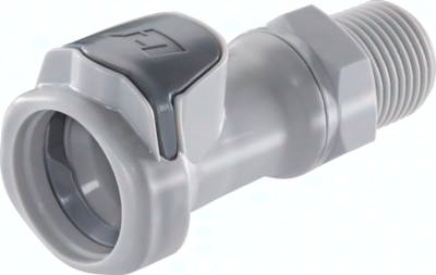 Steckerdurchmesser: 18,5 mm Durchfluss* Luft (Wasser): 1200 - 4100 l/min (15 - 57 l/min) Funktion: Wird durch Einstecken des Steckers in die Muffe bis zum hörbaren Klick gekuppelt. Ein Druck auf den ergonomischen Kunststoff-Entriegelungsknopf (gegen versehentliches Entriegeln geschützt) gibt den Stecker wieder frei. Es können Kupplungsstecker und Kupplungsdosen mit und ohne Absperrventil, sowie verschiedene Werkstoffe beliebig kombiniert werden. Das Absperrventil verhindert ein Austreten des Mediums im ungekuppelten Zustand. Typ Polypropylen: Werkstoffe: Körper, Ventile und Entriegelungstaste: Polypropylen (FDA-zertifiziert), Ventilfedern: Edelstahl AISI 316, Dichtungen: EPDM, äußere Feder unter Druckknopf: AISI 302, Schottmutter: Polypropylen, Schottdichtung: EPDM Temperaturbereich: 0°C bis max. +70°C Betriebsdruck: 0 - 4,2 bar, Vakuum bis 80%, (>+27°C Druckabschläge beachten: +40°C: max. 3,4 bar, +50°C: max. 2,7 bar, +60°C: max. 2,2 bar, +70°C: max. 1,7 bar) Medien: Druckluft, Wasser, viele Säuren und Laugen, Alkohole, Glykol, MEK, Sauerstoff**, Ozon, Kohlendioxid, viele Chemikalien Sterilisierbar durch: Formalin, Isopropylalkohol, Ethylalkohol, Ethylenoxid, Gammastrahlung Einsatzbereich: Für viele Chemikalien geeignet. Keine Beständigkeit gegenüber Mineralölen. Typ Polysulfon: Werkstoffe: Körper, Ventile und Entriegelungstaste: Polysulfon (FDA-zertifiziert), Ventilfedern: Edelstahl AISI 316, Dichtungen: EPDM, äußere Feder unter Druckknopf: AISI 302, Schottmutter: Polypropylen, Schottdichtung: EPDM Temperaturbereich: -40°C bis max. +138°C Betriebsdruck: 0 - 8,6 bar, Vakuum bis 80% (>+90°C Druckabschläge beachten: +100°C: max. 8,2 bar, +110°C: max. 7,8 bar, +120°C: max. 7,4 bar, +130°C: max. 7,1 bar, +138°C: max. 6,8 bar) Medien: Druckluft, Wasser, viele Säuren und Laugen, Alkohole, Glykol, Sauerstoff**, Ozon, viele Chemikalien Sterilisierbar durch: Formalin, Isopropylalkohol, Ethylalkohol, Ethylenoxid, Gammastrahlung, Erwärmung auf max. +121°C (ungekuppelt), Autoklavieren bei max. +121°C (ungekuppelt) Einsatzbereich: Kompatibel zu***: CPC-Colder HFC12, CPC-Colder HFC35 Für allgemeine Anwendungen, Anwendungen bei hohen Temperaturen. Keine Beständigkeit gegenüber Mineralölen. Nicht für Außenanwendungen geeignet, da nicht UV-stabilisiert. *bei 1 bar Druckabfall (je nach Konfiguration der Kupplungskombination: mit/ohne Ventil, Anschlussdimension, ... liegt der Durchfluss innerhalb des angegeben Bereichs), **vor Verwendung mit Sauerstoff unbedingt reinigen ***Namen und Bezeichnungen sind z.T. eingetragene Warenzeichen der jeweiligen Hersteller.