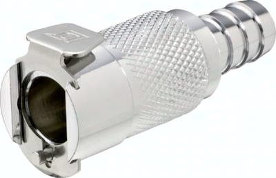 Steckerdurchmesser: 11 mm (Haltenutbreite ca. 1,3 mm) Durchfluss* Luft (Wasser): 560 - 2100 l/min (6 - 18 l/min) Funktion: Wird durch Einstecken des Steckers in die Muffe bis zum hörbaren "Klick" gekuppelt. Ein Druck auf den Entriegelungsknopf (bei Kunststoffkupplungen mit Schlauchanschluss gegen versehentliches Entriegeln geschützt) gibt den Stecker wieder frei. Es können Kupplungsstecker und Kupplungsdosen mit und ohne Absperrventil, sowie verschiedene Werkstoffe beliebig kombiniert werden. Das Absperrventil verhindert ein Austreten des Mediums im ungekuppelten Zustand. Typ POM: Werkstoffe: Körper und Ventile: Acetal (POM, FDA-zertifiziert), Ventilfedern: Edelstahl AISI 316, Dichtungen: NBR, Entriegelungstaste: AISI 301, Schottmutter: Messing vernickelt Temperaturbereich: -40°C bis max. +80°C Betriebsdruck: 0 - 8,3 bar, Vakuum bis 80% Medien: Druckluft, Wasser, Alkohole, Glykol, Mineralöle, Benzin, Sauerstoff**, Kohlendioxid, milde Chemikalien Sterilisierbar durch: Formalin, Isopropylalkohol, Ethylalkohol Einsatzbereich: Für allgemeine Anwendungen. Gute Beständigkeit gegenüber Mineralölen. Typ Polypropylen (Bitte Farbe angeben: beige = PPC oder grau = PPL): Werkstoffe: Körper und Ventile: Polypropylen (FDA-zertifiziert), Ventilfedern: Edelstahl AISI 316, Dichtungen: EPDM, Entriegelungstaste: AISI 301, Schottmutter: Messing vernickelt Temperaturbereich: 0°C bis max. +70°C Betriebsdruck: 0 - 8,3 bar, Vakuum bis 80%, (>+27°C Druckabschläge beachten: +40°C: max. 7 bar, +50°C: max. 6,5 bar, +60°C: max. 5,9 bar, +70°C: max. 5,2 bar) Medien: Druckluft, Wasser, viele Säuren und Laugen, Alkohole, Glykol, MEK, Sauerstoff**, Ozon, Kohlendioxid, viele Chemikalien Sterilisierbar durch: Formalin, Isopropylalkohol, Ethylalkohol, Ethylenoxid, Gammastrahlung Einsatzbereich: Für viele Chemikalien geeignet. Keine Beständigkeit gegenüber Mineralölen. Typ Messing verchromt: Werkstoffe: Körper: Messing verchromt (lebensmittelgeeignet), Ventile: Acetal (POM, FDA-zertifiziert), Ventilfedern: Edelstahl AISI 316, Dichtungen: NBR, Entriegelungstaste: AISI 301, Schottmutter: Messing vernickelt Temperaturbereich: -40°C bis max. +80°C Betriebsdruck: 0 - 17,3 bar, Vakuum bis 80% Medien: Druckluft, Alkohole, Glykol, Mineralöle, Benzin, Sauerstoff**, Kohlendioxid Sterilisierbar durch: Formalin, Isopropylalkohol, Ethylalkohol, Gammastrahlung, Erwärmung auf +121°C (ungekuppelt) Einsatzbereich: Für Anwendungen mit erhöhten Drücken oder mechanischen Belastungen (z.B. durch häufiges Kuppeln). Gute Beständigkeit gegenüber Mineralölen. *bei 1 bar Druckabfall (je nach Konfiguration der Kupplungskombination: mit/ohne Ventil, Anschlussdimension, ... liegt der Durchfluss innerhalb des angegebenen Bereichs), **vor Verwendung mit Sauerstoff unbedingt reinigen. Kompatibel zu****: CPC-Colder PLC, CPC-Colder PLC12, CPC-Colder LC
