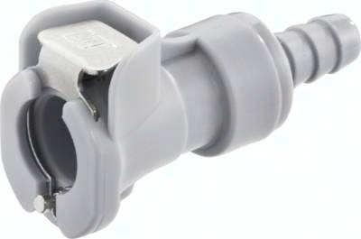 Steckerdurchmesser: 11 mm (Haltenutbreite ca. 1,3 mm) Durchfluss* Luft (Wasser): 560 - 2100 l/min (6 - 18 l/min) Funktion: Wird durch Einstecken des Steckers in die Muffe bis zum hörbaren "Klick" gekuppelt. Ein Druck auf den Entriegelungsknopf (bei Kunststoffkupplungen mit Schlauchanschluss gegen versehentliches Entriegeln geschützt) gibt den Stecker wieder frei. Es können Kupplungsstecker und Kupplungsdosen mit und ohne Absperrventil, sowie verschiedene Werkstoffe beliebig kombiniert werden. Das Absperrventil verhindert ein Austreten des Mediums im ungekuppelten Zustand. Typ POM: Werkstoffe: Körper und Ventile: Acetal (POM, FDA-zertifiziert), Ventilfedern: Edelstahl AISI 316, Dichtungen: NBR, Entriegelungstaste: AISI 301, Schottmutter: Messing vernickelt Temperaturbereich: -40°C bis max. +80°C Betriebsdruck: 0 - 8,3 bar, Vakuum bis 80% Medien: Druckluft, Wasser, Alkohole, Glykol, Mineralöle, Benzin, Sauerstoff**, Kohlendioxid, milde Chemikalien Sterilisierbar durch: Formalin, Isopropylalkohol, Ethylalkohol Einsatzbereich: Für allgemeine Anwendungen. Gute Beständigkeit gegenüber Mineralölen. Typ Polypropylen (Bitte Farbe angeben: beige = PPC oder grau = PPL): Werkstoffe: Körper und Ventile: Polypropylen (FDA-zertifiziert), Ventilfedern: Edelstahl AISI 316, Dichtungen: EPDM, Entriegelungstaste: AISI 301, Schottmutter: Messing vernickelt Temperaturbereich: 0°C bis max. +70°C Betriebsdruck: 0 - 8,3 bar, Vakuum bis 80%, (>+27°C Druckabschläge beachten: +40°C: max. 7 bar, +50°C: max. 6,5 bar, +60°C: max. 5,9 bar, +70°C: max. 5,2 bar) Medien: Druckluft, Wasser, viele Säuren und Laugen, Alkohole, Glykol, MEK, Sauerstoff**, Ozon, Kohlendioxid, viele Chemikalien Sterilisierbar durch: Formalin, Isopropylalkohol, Ethylalkohol, Ethylenoxid, Gammastrahlung Einsatzbereich: Für viele Chemikalien geeignet. Keine Beständigkeit gegenüber Mineralölen. Typ Messing verchromt: Werkstoffe: Körper: Messing verchromt (lebensmittelgeeignet), Ventile: Acetal (POM, FDA-zertifiziert), Ventilfedern: Edelstahl AISI 316, Dichtungen: NBR, Entriegelungstaste: AISI 301, Schottmutter: Messing vernickelt Temperaturbereich: -40°C bis max. +80°C Betriebsdruck: 0 - 17,3 bar, Vakuum bis 80% Medien: Druckluft, Alkohole, Glykol, Mineralöle, Benzin, Sauerstoff**, Kohlendioxid Sterilisierbar durch: Formalin, Isopropylalkohol, Ethylalkohol, Gammastrahlung, Erwärmung auf +121°C (ungekuppelt) Einsatzbereich: Für Anwendungen mit erhöhten Drücken oder mechanischen Belastungen (z.B. durch häufiges Kuppeln). Gute Beständigkeit gegenüber Mineralölen. *bei 1 bar Druckabfall (je nach Konfiguration der Kupplungskombination: mit/ohne Ventil, Anschlussdimension, ... liegt der Durchfluss innerhalb des angegebenen Bereichs), **vor Verwendung mit Sauerstoff unbedingt reinigen. Kompatibel zu****: CPC-Colder PLC, CPC-Colder PLC12, CPC-Colder LC