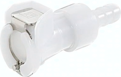 Steckerdurchmesser: 11 mm (Haltenutbreite ca. 1,3 mm) Durchfluss* Luft (Wasser): 560 - 2100 l/min (6 - 18 l/min) Funktion: Wird durch Einstecken des Steckers in die Muffe bis zum hörbaren "Klick" gekuppelt. Ein Druck auf den Entriegelungsknopf (bei Kunststoffkupplungen mit Schlauchanschluss gegen versehentliches Entriegeln geschützt) gibt den Stecker wieder frei. Es können Kupplungsstecker und Kupplungsdosen mit und ohne Absperrventil, sowie verschiedene Werkstoffe beliebig kombiniert werden. Das Absperrventil verhindert ein Austreten des Mediums im ungekuppelten Zustand. Typ POM: Werkstoffe: Körper und Ventile: Acetal (POM, FDA-zertifiziert), Ventilfedern: Edelstahl AISI 316, Dichtungen: NBR, Entriegelungstaste: AISI 301, Schottmutter: Messing vernickelt Temperaturbereich: -40°C bis max. +80°C Betriebsdruck: 0 - 8,3 bar, Vakuum bis 80% Medien: Druckluft, Wasser, Alkohole, Glykol, Mineralöle, Benzin, Sauerstoff**, Kohlendioxid, milde Chemikalien Sterilisierbar durch: Formalin, Isopropylalkohol, Ethylalkohol Einsatzbereich: Für allgemeine Anwendungen. Gute Beständigkeit gegenüber Mineralölen. Typ Polypropylen (Bitte Farbe angeben: beige = PPC oder grau = PPL): Werkstoffe: Körper und Ventile: Polypropylen (FDA-zertifiziert), Ventilfedern: Edelstahl AISI 316, Dichtungen: EPDM, Entriegelungstaste: AISI 301, Schottmutter: Messing vernickelt Temperaturbereich: 0°C bis max. +70°C Betriebsdruck: 0 - 8,3 bar, Vakuum bis 80%, (>+27°C Druckabschläge beachten: +40°C: max. 7 bar, +50°C: max. 6,5 bar, +60°C: max. 5,9 bar, +70°C: max. 5,2 bar) Medien: Druckluft, Wasser, viele Säuren und Laugen, Alkohole, Glykol, MEK, Sauerstoff**, Ozon, Kohlendioxid, viele Chemikalien Sterilisierbar durch: Formalin, Isopropylalkohol, Ethylalkohol, Ethylenoxid, Gammastrahlung Einsatzbereich: Für viele Chemikalien geeignet. Keine Beständigkeit gegenüber Mineralölen. Typ Messing verchromt: Werkstoffe: Körper: Messing verchromt (lebensmittelgeeignet), Ventile: Acetal (POM, FDA-zertifiziert), Ventilfedern: Edelstahl AISI 316, Dichtungen: NBR, Entriegelungstaste: AISI 301, Schottmutter: Messing vernickelt Temperaturbereich: -40°C bis max. +80°C Betriebsdruck: 0 - 17,3 bar, Vakuum bis 80% Medien: Druckluft, Alkohole, Glykol, Mineralöle, Benzin, Sauerstoff**, Kohlendioxid Sterilisierbar durch: Formalin, Isopropylalkohol, Ethylalkohol, Gammastrahlung, Erwärmung auf +121°C (ungekuppelt) Einsatzbereich: Für Anwendungen mit erhöhten Drücken oder mechanischen Belastungen (z.B. durch häufiges Kuppeln). Gute Beständigkeit gegenüber Mineralölen. *bei 1 bar Druckabfall (je nach Konfiguration der Kupplungskombination: mit/ohne Ventil, Anschlussdimension, ... liegt der Durchfluss innerhalb des angegebenen Bereichs), **vor Verwendung mit Sauerstoff unbedingt reinigen. Kompatibel zu****: CPC-Colder PLC, CPC-Colder PLC12, CPC-Colder LC