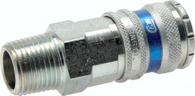 Werkstoffe: Typ MS-vernickelt: Gehäuse Messing vernickelt, Schiebehülse: Stahl vernickelt, Dichtung: NBR Typ MS/Stahl: Gehäuse: Messing vernickelt/Stahl (QPQ), Schiebehülse: Messing vernickelt, Dichtung: NBR Typ CEJN: Gehäuse Stahl/Messing verzinkt, Dichtung: NBR, Typ 1.4305: Gehäuse und Schiebehülse: 1.4305, Dichtung: Viton Temperaturbereich: -20°C bis max. +100°C (Edelstahl: -15°C bis max. +200°C) Betriebsdruck: 0 - 35 bar, sowie Grobvakuum, CEJN-Kupplungen: 0 - 16 bar Kompatibel zu***: Rectus (27, 41, 1700, 1727), TEMA (1700), CEJN (410) Durchfluss: MS-vernickelt/1.4305: 2600 l/min (Option: -BA: 2100 l/min), Messing/Stahl: 3600 l/min, CEJN-Kupplung: 3900 l/min (6 bar Eingangsdruck, 0,5 bar Druckdifferenz) Achtung: Nur folgende Paarungen von Kupplungsdose und Kupplungsstecker sind möglich: Kupplungsdose absperrend BA mit Kupplungsstecker ohne Ventil Kupplungsdose absperrend BA mit Kupplungsstecker absperrend BA ***Namen und Bezeichnungen sind z.T. eingetragene Warenzeichen der jeweiligen Hersteller. Optional: Körper aus 1.4404 -ES4A, Verwendung für Stecker beidseitig absperrend -BA