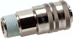 Werkstoffe: Gehäuse: Messing vernickelt, Stahl vernickelt, Dichtung: NBR Temperaturbereich: -20°C bis max. +100°C Betriebsdruck: 0 - 12 bar (Eco: bis max. 8* bar) Durchfluss: 1800 l/min (Eco: 1100 l/min) (Eingangsdruck: 6 bar, max. Druckabfall: 0,5 bar) Funktion: Das Kuppeln erfolgt wie bei Standardkupplungen durch Einstecken des Stecknippels in die Kupplungsdose. Das Entkuppeln erfolgt in 2 Schritten: Durch Zurückschieben der Entriegelungshülse schließt die Kupplungsdose und entlüftet den Kupplungsstecker, während dieser noch in der Kupplungsdose festgehalten wird. Durch Ziehen der Entriegelungshülse wird der Stecker dann freigegeben. Der gefährliche Peitschenhiebeffekt wird somit verhindert. Vorteile: keine Verletzungsgefahr beim Entriegeln der Kupplung, da der Stecker nicht ausschlägt, einfache Bedienung (Entriegelung wie Standardkupplungen) *entspricht 35 bar statischem Betriebsdruck (ohne Pulsation) Empfehlung: Kupplungsstecker aus gehärtetem Stahl verwenden! Kompatibel zu**: Rectus (25, 26, 1600, 1625), TEMA (1600), CEJN (320), JWL (520, 530, 560), Legris (25, 26), Parker (PE, PEF), Prevost (E ... 07) und viele andere deutsche Fabrikate **Namen und Bezeichnungen sind z.T. eingetragene Warenzeichen der jeweiligen Hersteller.