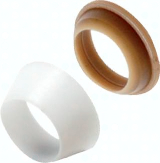 Werkstoffe: PA (Polyamid), PP (Polypropylen), PVDF (Polyvinylidenfluorid), PFA (PTFE) Einsatzgebiet und allgemeine chemische Resistenzen PA: Einsatz in der Pneumatik sowie für Wasser. Die chemische Beständigkeit ist gut gegenüber Benzin, Diesel, Heizöl, Alkalien. PP: Widerstandsfähig gegen wässrige Lösungen von Säuren, Laugen und Salzen, sowie einer großen Zahl organischer Lösungsmittel. Ungeeignet für konzentrierte oxydierende Säuren. PVDF: Widerstandsfähig gegen Säuren, Salzlösungen, aliphatische, aromatische und chlorierte Kohlenwasserstoffe, Alkohole und Halogene. Bedingt verwendbar für Ketone, Ester, Äther, organische Basen und Alkalilaugen. PFA: Widerstandsfähig gegen fast alle Chemikalien. Betriebstemperatur: PA: bis max. +80°C, PP: bis max. +90°C, PVDF: -40°C bis max. +140°C, PFA: bis max. +250°C PN (bei +20°C): 10 bar Anschlussprinzip "1" für Schläuche (nicht für PTFE-Schläuche): PA, PP, PVDF: Der Schlauch wird über die feste Schlauchtülle in die Verschraubung geschoben und mit einem elastischen Klemmring durch Anziehen der Rändelmutter arretiert. Der elastische Klemmring ermöglicht es, innerhalb der gleichen Verschraubung mehrmals verwendet zu werden. Das bedeutet, die Verschraubung kann gelöst werden und mit dem gleichen Klemmring wieder dicht geschlossen werden. Alle Gewinde und Schlauchtüllen (für Schlauchaufnahme) sind nahtfrei. Anschlussprinzip "2" für Schläuche (auch für PTFE-Schläuche): PFA: Der Schlauch wird über die feste Schlauchtülle in die Verschraubung geschoben und mit einer Schneid-Dichtring-Kombination durch Anziehen der Rändelmutter arretiert. Alle Gewinde und Schlauchtüllen (für Schlauchaufnahme) sind nahtfrei. *Bei PFA- und PTFE-Schläuchen empfehlen wir einen Austausch des Klemmrings gegen eine Schneid- und Dichtringkombination (KL..PP), **Rändelmutter und Klemmring in PP, ***Grundmaterial FDA-zugelassen