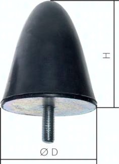 Verwendung: zur Schalldämmung, Schwingungsisolation und Anschlagdämpfung Werkstoffe: NR 55° Shore mit Stahlschraube und Stahlplatte (verzinkt)