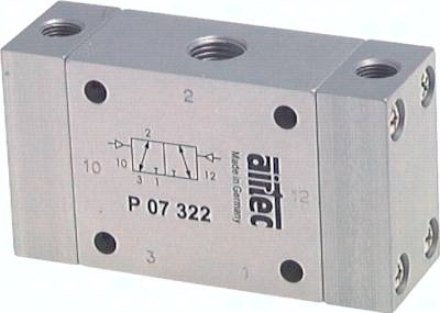 Werkstoffe: Körper: Aluminium eloxiert, Innenteile: Aluminium, Messing und Stahl rostfrei, Dichtungen: Kunststoff und NBR Temperaturbereich: -10°C bis max. +70°C Medien: geölte und ungeölte, gefilterte Druckluft Druckeingang: beliebig Vorteile: Bei diesem Ventil dominiert die Steuerseite 12 durch eine größere Kolbenfläche, sodass der Schieber auch gegen ein Signal bei 10 umschaltet. *Vakuum auf Anfrage