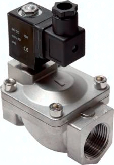 Werkstoffe: Körper: 1.4408, Innenteile: Edelstahl, Dichtung: Viton Temperaturbereich: -20°C bis max. +120°C, Umgebung: max. +65°C Leistungsaufnahme: Gleichstrom: 13 W, Wechselstrom: 22 VA (Anzug: 40 VA) Medien: Druckluft, neutrale Gase, Wasser, neutrale dünnflüssige Medien, andere Medien auf Anfrage Einbaulage: mit stehendem Magneten Spannungen: Standard: 24 V=, 230 V AC, auf Wunsch: 12 V=, 24 V AC Schutzart: IP 65 Information: Diese Ventile werden grundsätzlich mit Spule und Stecker ausgeliefert! Achtung: Servogesteuerte Ventile benötigen zum Öffnen oder Schließen eine Druckdifferenz zwischen Ventileingang und -ausgang. Die Druckdifferenz wird als Mindestdruck angegeben. Entsteht im Ventil ein Druckausgleich, eventuell dadurch, dass am Ventilausgang kein oder nur wenig Medium verbraucht wird, funktioniert das Ventil nicht mehr (es öffnet oder schließt nicht zuverlässig). *Wasserdurchfluss bei +20°C, 1 bar Druck am Ventileingang, freier Auslauf. Durchfluss für Luft [l/min] ca. 13,4 x kv x PEingang, wenn PAusgang < PEingang/2 (PEingang und PAusgang sind Absolutwerte in bar.)