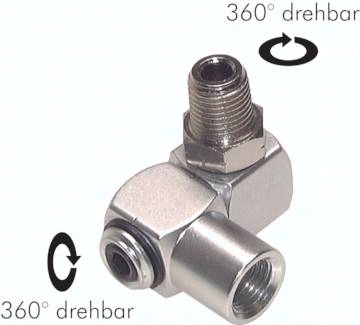 Verwendung: Für geringe Drehbewegungen, z.B. Anschluss an Druckluftwerkzeuge, speziell für hängende Druckluftwerkzeuge. Werkstoffe: Messing vernickelt und Kunststoff Temperaturbereich: 0°C bis max. +60°C Betriebsdruck: 0 - 15 bar Medien: Druckluft