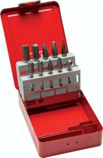 Beschreibung: Hochwertige Hartmetall-Frässtifte mit Kreuzverzahnung (KVZ 4) zum Entgraten, Konturenbearbeitung, Schweißnahtbearbeitung, Oberflächenbearbeitung, Verputzen von hochlegierten, rost-, säure- und hitzebeständigen Stählen, Guss und Kunststoffen Verwendung: in Schleifern mit 6,0 mm (3,0 mm) Spannschaft, Schnittgeschwindigkeit 300 m/min (Drehzahlen entsprechend 6000 - 25000 U/min)