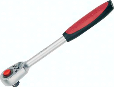 Ausführung: Knarren nach DIN 3122, ISO 3315 für Steckschlüsseleinsätze und Verbindungsteile mit Innenvierkantantrieb nach DIN 3120-C12.5, ISO 1174 mit Kugelarretierung, Vanadium-Stahl, verchromt
