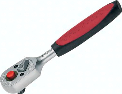 Ausführung: Knarren nach DIN 3122, ISO 3315 für Steckschlüsseleinsätze und Verbindungsteile mit Innenvierkantantrieb nach DIN 3120-C6.3, ISO 1174 mit Kugelarretierung, Vanadium-Stahl, verchromt