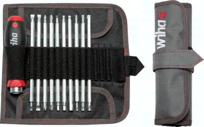 Schraubendreher-Sets - in robuster Rolltasche, hochwertige Ausführung SDREHV SET11: Wiha-Schraubendreher-Set - SoftFinish-telescopic Griff - ClickStop-Kugelklemmung, Klingen aus Chrom-Vanadium-Molybdän Stahl, durchgehend gehärtet und mattverchromt, Klingenlänge variabel einstellbar von 42 - 114 mm SDREHVE SET1: Wera-Schraubendreher-Set VDE - Kraftform-Plus, ergonomischer Mehrkomponentengriff mit Abrollschutz, isolierte Klingen, Kennzeichnung der Wechselklingen Profilgröße, isoliert und stückgeprüft gem. DIN EN 60900 (IEC 60900:2004) für garantiert sicheres Arbeiten unter Spannung bis 1000 Volt, Rolltasche mit Gürtelbefestigung