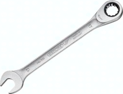 Ausführung: flache Ausführung mit feinverzahnter Ringratsche, sehr hohe Drehmomentübertragung, Drehrichtungsänderung durch Umdrehen des Schlüssels, Vanadium-Stahl, verchromt