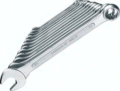 Ausführung: nach DIN 3113 Form A, ISO 3318 / 7738, Ringseite um 15° abgewinkelt, Vanadium-Stahl, verchromt. Ringe bei Typ Gedore poliert. *Typ Carolus 10-teilig, 9mm nicht eingeschlossen