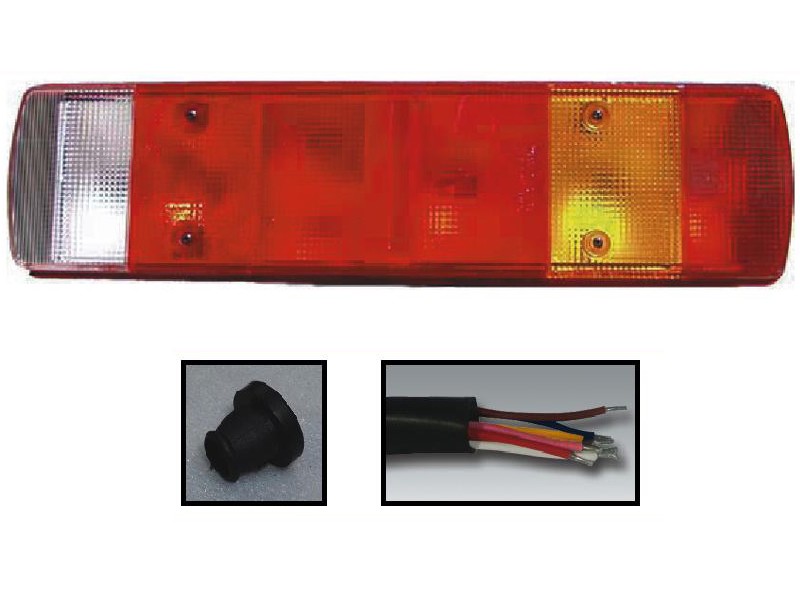 Lampa Stop cu 7 compartimente, cu cablu, partea dreapta. Marker de contur, lampa de directie, indicator, stop, ceata, numar de inregistrare si contur, reflectorizant universal.Dimensiuni: 515x132x85 m