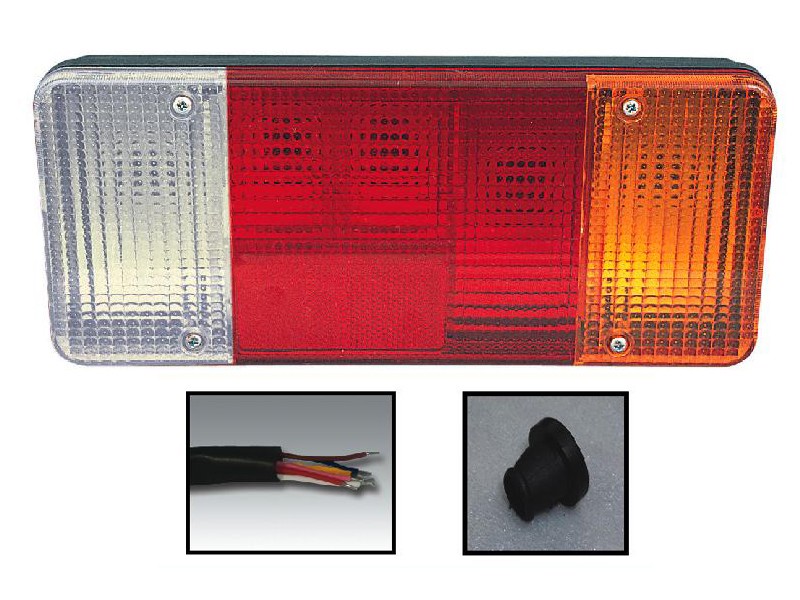 Lampa Stop cu 4 compartimente, partea dreapta cu mers inapoi, lampa de directie, indicator, stop spate, ceata.Dimensiuni: 304x132x79 mm