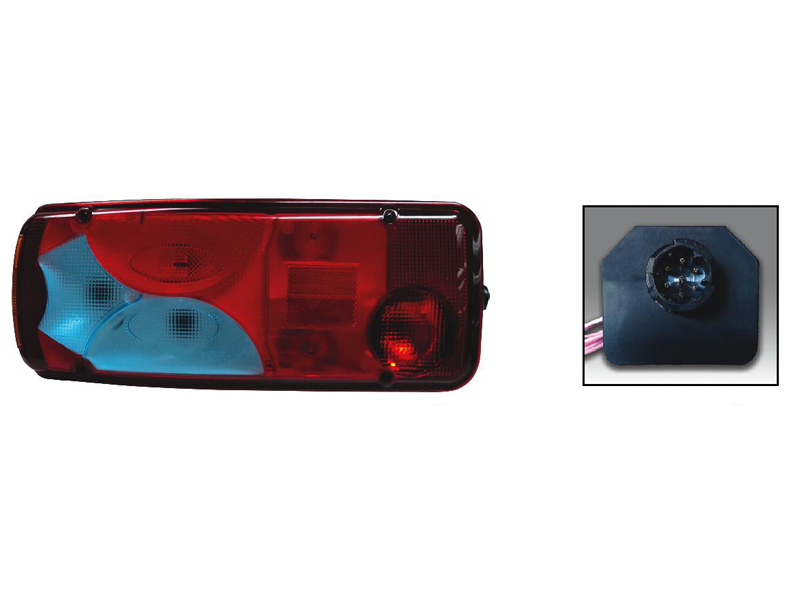 Lampa Stop MAN, cu mufă 7 pini.Partea stanga.7 functii: pozitie, frana, semnalizare, ceata, mers inapoi, catadioptru, gabarit;Dimensiuni: 404x160x92 mm