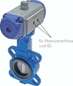 Klappe Werkstoffe: Gehäuse: GG25 (Standard, Druckluft bis 6 bar), GGG40 (höhere Drücke und Temperaturen), Edelstahl (aggressive Umgebung); Scheibe: GGG40 polyamidbeschichtet (Standard), Edelstahl (Wasser, abrasive Medien, Lebensmittel), Alu-Bronze (Seewasser), GG25 epoxybeschichtet (Wasser), Edelstahl halarbeschichtet (Chemikalien, Pharmazie), Edelstahl hochglanzpoliert (Chemikalien, Pharmazie, Lebensmittel); Manschette: EPDM (-10°C bis max. +110°C), NBR (+5°C bis max. +85°C), Viton (+5°C bis max. +180°C), EPDM weiß (+8°C bis max. +80°C), Hypalon (+5°C bis max. +90°C), Silikon (-10°C bis max. +200°C), NBR carboxylhaltig (+5°C bis max. +110°C), PTFE / EPDM (+5°C bis max. +110°C), PTFE / Silikon (-40°C bis max. +200°C) Medien: flüssige und gasförmige, neutrale Medien (je nach Materialkombination) Baulängen: DIN 3202 T3 K1, ISO 5752-Serie 20, NF EN 558-1-Serie 20, BS 5155 Tabelle 6 Spalte 4, API 609 Tabelle1 Schwenkantrieb Bauweise: ATEX-konform Ex II 2GD c Werkstoffe: Gehäuse: Aluminium eloxiert, Zahnstange und Kolben: Aluminium, Deckel: Acetalharz, Dichtung: NBR Temperaturbereich: -20°C bis max. +80°C Steuerdruck: 6 - 10 bar (geringere Drücke auf Anfrage) Optional: Handnotbetätigung -HN Achtung: Bei hohen Medientemperaturen muss der Antrieb ggf. gekühlt werden!