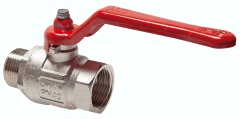 Werkstoffe: Gehäuse: Messing vernickelt, Kugel: Messing hartverchromt, Dichtung: PTFE / NBR Temperaturbereich: -20°C bis max. +150°C Einsatzbereich: Wasser (kein Dampf), neutrale, gasförmige und nicht aggressive, flüssige Medien, Mineralöle, Druckluft, Vakuum (max. -0,9 bar) Vorteile: Durch Zukauf optionaler Kombigriffe (Seite 433a) können Sie viele verschiedene Handgriffvarianten realisieren: -Standardgriff in rot, gelb, blau und schwarz, -Knebelgriff in den Farben rot, gelb, blau, schwarz und grün, -Flachstahlgriff in rot, gelb und grün (optional: abschließbar), - Langer Griff in rot *Kombigriffe finden Sie auf Seite 433a.