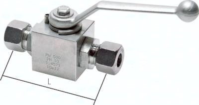 Werkstoffe: Gehäuse: 1.4571, Kugel: 1.4571, Dichtschalen: POM, Dichtungen: PTFE / Viton, Griff: 1.4571 Temperaturbereich: -30°C bis max. +100°C Einsatzbereich: Hydrauliköl, Heizöl (Wasser nur nach Freigabe durch uns)