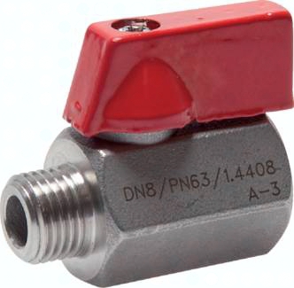 Werkstoffe: Gehäuse: 1.4408, Kugel: 1.4408, Griffschraube: 1.4301, Dichtung: PTFE/Viton, Griff: Zinkdruckguss Temperaturbereich: -20°C bis max. +200°C Einsatzbereich: Wasser, Öl, Druckluft, Kraftstoffe, Lösungsmittel, aggressive Medien Optional: Zeugnis 3.1