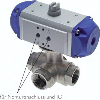 Kugelhahn: Werkstoffe: Gehäuse: Messing vernickelt, Kugel: Messing hartverchromt, Dichtung: PTFE / NBR Temperaturbereich: -10°C bis max. +100°C Eigenschaften: Druckeinlass von allen drei Seiten möglich Einsatzbereich: Wasser, Öl, Druckluft, Kraftstoffe, Heizöl, Lösungsmittel, schwache Säuren und Laugen Schwenkantrieb: Bauweise: ATEX-konform Ex II 2GD c Werkstoffe: Gehäuse: Aluminium eloxiert, Zahnstange und Kolben: Aluminium, Deckel: Acetalharz, Dichtung: NBR Temperaturbereich: -20°C bis max. +80°C Steuerdruck: 6 - 10 bar (geringere Drücke auf Anfrage) Optional: Viton-Dichtung -V, Drehrichtung geändert -FO Achtung: Bei hohen Medientemperaturen muss der Antrieb ggf. gekühlt werden!