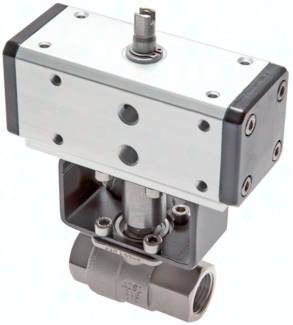 Kugelhahn: Werkstoffe: Gehäuse: Edelstahl 1.4408, Kugel: Edelstahl 1.4401, Dichtung: PTFE/Viton Temperaturbereich: -20°C bis max. +150°C Einsatzbereich: Wasser, Druckluft, Gas und aggressive Medien Schwenkantrieb: Drehwinkel: 90° Temperaturbereich: 0°C bis max. +80°C, -20°C bis max. +80°C bei trockener Luft Nenndruck: 5,6 bar max. Betriebsdruck: 8,4 bar Steuermedium: gefilterte, trockene Luft; muss nicht geschmiert sein; zur Schmierung kann nichtreinigendes Öl, das NBR-verträglich ist, verwendet werden Achtung: Bei hohen Medientemperaturen muss der Antrieb ggf. gekühlt werden!