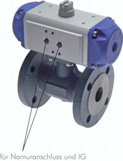 Kugelhahn: Werkstoffe: PN 16: Gehäuse: GG25, Kugel: Stahlguss verchromt, Dichtung: PTFE / NBR; PN 40: Gehäuse: Stahlguss, Kugel: Edelstahl, Dichtung: PTFE / Viton Baulänge nach DIN 3202-F4 (DIN EN 558-1, Reihe 14) (ab DN 200 nach DIN 3202-F5, DIN EN 558-1, Reihe 15) Temperaturbereich: -20°C bis max. +120°C Einsatzbereich: Wasser, Öl, Druckluft, Vakuum (max. -0,9 bar), Kraftstoffe, Lösungsmittel Schwenkantrieb: Bauweise: ATEX-konform Ex II 2GD c Werkstoffe: Gehäuse: Aluminium eloxiert, Zahnstange und Kolben: Aluminium, Deckel: Acetalharz, Dichtungen: NBR Temperaturbereich: -20°C bis max. +80°C Steuerdruck: 6 - 10 bar (geringere Drücke auf Anfrage) Optional: Viton-Dichtungen -V Achtung: Bei hohen Medientemperaturen muss der Antrieb ggf. gekühlt werden!