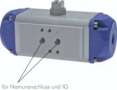 Werkstoffe: Gehäuse: Aluminium eloxiert, Zahnstange und Kolben: Aluminium, Deckel: Acetalharz (ab Baugröße 12: Aluminium), Dichtungen: NBR Temperaturbereich: -20°C bis max. +80°C Steuerdruck: 6 - 10 bar (geringere Drücke auf Anfrage) Eigenschaften: Anbauflansch gemäß ISO 5211, Antriebsanschluss mit Vielkant gem. DIN 3337, Anschluss für Magnetventil nach VDI/VDE 3845 (NAMUR) oder über Gewinde, Anschluss für Stellungsregler oder Endschalterbox nach VDI/VDE 3845 (NAMUR), Sichtanzeige nach NAMUR, Bauweise ATEX-konform Ex II 2 GD c Optional: Viton-Dichtungen (-20°C bis max. +120°C, ab Baugröße 12 bis 130: bis max. +150°C) -V Achtung: Die oben angegebenen Anschlussmaße passen auf die meisten Kugelhähne. Da es jedoch eine Vielzahl von Variationen gibt, geben Sie uns bei Ersatzbestellung bitte an: Kugelhahntyp, Anschlussbild auf Kugelhahn (ISO 5211) - Maß A und B, Größe des Vierkants - Maß C, benötigtes Drehmoment (wenn bekannt)