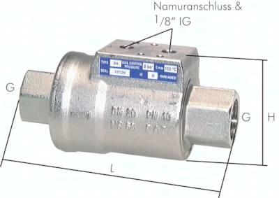 Werkstoffe: Gehäuse und Kolben: Messing vernickelt, Dichtungen: NBR Temperaturbereich: -20°C bis max. +80°C, mit Vitondichtung bis max. +150°C Betriebsdruck: max. 10 bar, sowie Grobvakuum Anschluss: Namur & 2 x G 1/8" IG Medien: Wasser, Öl, Druckluft Optional: Viton-Dichtungen (-20°C bis max. +150°C) -V, magn. Endschalter -EB Vorteile: Durchfluss wie bei pneumatisch angetriebenem Kugelhahn, kurze Schaltzeiten, kompakte Bauform, Einbaulage beliebig, sehr günstiger Preis