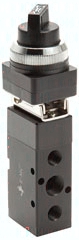 Werkstoffe: Körper und Schieber: Aluminium, Dichtungen: NBR Temperaturbereich: -5°C bis max. +60°C Betriebsdruck: 0 - 8 bar Durchfluss: 800 l/min Medien: geölte und ungeölte, gefilterte Druckluft Schalttafelbohrung: 30,5 mm