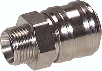 Werkstoffe: Gehäuse: Messing, Messing vernickelt, Stahl gehärtet, 1.4305, Dichtung: NBR (Edelstahl: Viton) Temperaturbereich: -20°C bis max. +100°C (Edelstahl: -15°C bis max. +200°C, Kunststoffhülse max. +80°C) Betriebsdruck: 0 - 35 bar sowie Grobvakuum, CEJN-Kupplungen: 0 - 16 bar Durchfluss***: Bolzenverriegelung: 1100 l/min (Option -BA: 800 l/min), Kugelverriegelung: 1800 l/min, CEJN-Kupplung: 2100 l/min, Kugelverriegelung/Kunststoffhülse: 2100 l/min ***6 bar Eingangsdruck, 0,5 bar Druckdifferenz Achtung: Nur folgende Paarungen von Kupplungsdose und Kupplungsstecker sind möglich: Kupplungsdose absperrend BA mit Kupplungsstecker ohne Ventil Kupplungsdose absperrend BA mit Kupplungsstecker absperrend BA Kompatibel zu**: Rectus (25, 26, 1600, 1625), TEMA (1600), CEJN (320), JWL (520, 530, 560), Legris (25, 26), Parker (PE, PEF), Prevost (E ... 07) und viele andere deutsche Fabrikate **Namen und Bezeichnungen sind z.T. eingetragene Warenzeichen der jeweiligen Hersteller. Optional: Verwendung für Stecker beidseitig absperrend -BA, NPT-Gewinde -NPT *SW 22 mit PTFE-beschichtetem G-Gewinde, optional mit SW 24 und unverlierbarem Dichtring: KDG 12 NW7-SW24