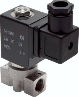 Werkstoffe: Körper: 1.4408, Innenteile: Edelstahl, Dichtung: Viton Temperaturbereich: -20°C bis max. +120°C, Umgebung: max. +65°C Leistungsaufnahme: Gleichstrom: 13 W, Wechselstrom: 22 VA (Anzug: 40 VA) Medien: Druckluft, neutrale Gase, Wasser, neutrale dünnflüssige Medien, andere Medien auf Anfrage Einbaulage: mit stehendem Magneten Spannungen: Standard: 24 V=, 230 V AC, auf Wunsch: 12 V=, 24 V AC Schutzart: IP 65 Information: Diese Ventile werden grundsätzlich mit Spule und Stecker ausgeliefert! Achtung: Servogesteuerte Ventile benötigen zum Öffnen oder Schließen eine Druckdifferenz zwischen Ventileingang und -ausgang. Die Druckdifferenz wird als Mindestdruck angegeben. Entsteht im Ventil ein Druckausgleich, eventuell dadurch, dass am Ventilausgang kein oder nur wenig Medium verbraucht wird, funktioniert das Ventil nicht mehr (es öffnet oder schließt nicht zuverlässig). *Wasserdurchfluss bei +20°C, 1 bar Druck am Ventileingang, freier Auslauf. Durchfluss für Luft [l/min] ca. 13,4 x kv x PEingang, wenn PAusgang < PEingang/2 (PEingang und PAusgang sind Absolutwerte in bar.)