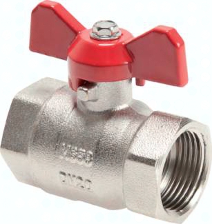 Werkstoffe: Gehäuse: Messing vernickelt, Kugel: Messing verchromt, Dichtung: PTFE / NBR Temperaturbereich: -20°C bis max. +95°C Einsatzbereich: Druckluft, Wasser, Öle Optional: mit Knebelgriff -KN (1/4" - 1 1/4") *nur für Wasser und Öle geeignet, **passt nicht auf Kugelhähne mit Knebelgriff