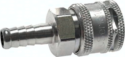 Werkstoffe: Gehäuse: Messing vernickelt, Stahl vernickelt, Dichtung: NBR Temperaturbereich: -20°C bis max. +100°C Betriebsdruck: 0 - 12 bar (Eco: bis max. 8* bar) Durchfluss: 1800 l/min (Eco: 1100 l/min) (Eingangsdruck: 6 bar, max. Druckabfall: 0,5 bar) Funktion: Das Kuppeln erfolgt wie bei Standardkupplungen durch Einstecken des Stecknippels in die Kupplungsdose. Das Entkuppeln erfolgt in 2 Schritten: Durch Zurückschieben der Entriegelungshülse schließt die Kupplungsdose und entlüftet den Kupplungsstecker, während dieser noch in der Kupplungsdose festgehalten wird. Durch Ziehen der Entriegelungshülse wird der Stecker dann freigegeben. Der gefährliche Peitschenhiebeffekt wird somit verhindert. Vorteile: keine Verletzungsgefahr beim Entriegeln der Kupplung, da der Stecker nicht ausschlägt, einfache Bedienung (Entriegelung wie Standardkupplungen) *entspricht 35 bar statischem Betriebsdruck (ohne Pulsation) Empfehlung: Kupplungsstecker aus gehärtetem Stahl verwenden! Kompatibel zu**: Rectus (25, 26, 1600, 1625), TEMA (1600), CEJN (320), JWL (520, 530, 560), Legris (25, 26), Parker (PE, PEF), Prevost (E ... 07) und viele andere deutsche Fabrikate **Namen und Bezeichnungen sind z.T. eingetragene Warenzeichen der jeweiligen Hersteller.