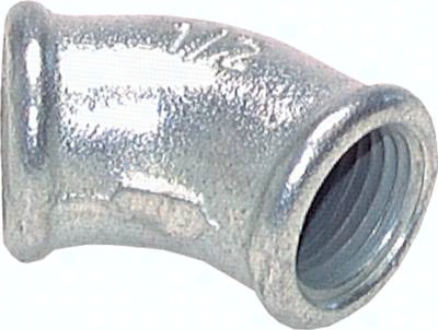 45°-Winkel Rp 3/8" (IG), 25 bar Temperguss verzinkt