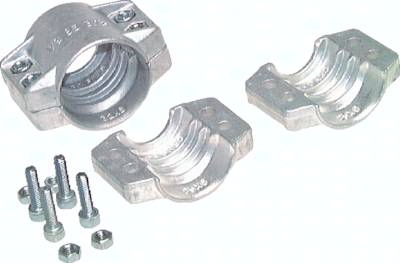 Vorteile: Große Spannkraft durch Innensechskantschrauben. Für glatte Schlauchstutzen und Schlauchstutzen mit Sicherheitskragen nach EN 14420. *Pressmessing, **Zwischenmaß (nicht genormt)