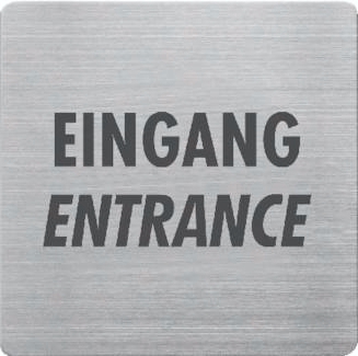 Ausführung: Aus hochwertigem, matt gebürsteten Edelstahl mit unempfindlichem schwarzen Aufdruck und Selbstklebepad auf der Rückseite.