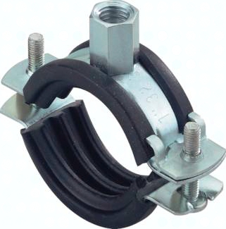 Werkstoffe: Schelle: Stahl verzinkt, Einlage: SBR / EPDM Temperaturbereich: -50°C bis max. +110°C Vorteile: Schallschutz für DIN 4109, patentierter Schnellverschluss gewährleistet eine einfache und schnelle Montage, großer Öffnungswinkel zum leichten Einlegen der Rohre (Rohrschelle wird nach unten aufgeklappt), durch zuverlässiges Einrasten kann das Rohr vormontiert und vor dem Festziehen der Schelle justiert werden *Gewindemuffe mit zwei nutzbaren Befestigungsgewinden