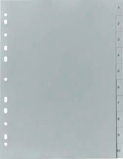 aus reißfester PP-Folie für jahrelangen Gebrauch, bedruckte, ausgestanzte Register, Eurolochung, für Format DIN A4, Abmessung: 225 x 297 mm (volle Höhe)